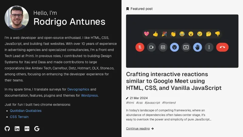 Shiawase PandaBox: An Astro Lightbox and Gallery Home | david.reviews Timo Kleemann • Frontend-Entwickler aus Hamburg • Willkommen Webrecorder: Web Archiving for All Meditation Apps Máy Tinh Online Rocket Science Group Freelancer web design & developer in Kent Hej! Welcome to IKEA Global Rollins College | Liberal Arts College in Winter Park, Florida Mortgage Brokers | No More Computer Says No | Haysto DesignBits • Webdesign Hamburg • Übersicht 外贸网站建设,Google SEO,外贸网络营销推广 - 厦门杰赢网络科技有限公司 Top Control Valves Manufacturer - MFRS Non-Surgical Weight Loss Procedures & Medication | Bariendo Experience the best adventure and yoga retreats | Adventure and Yoga Mr VAST Jane Faram Yongseok's Blog | 장용석 블로그 Adriaan.cc Rodrigo Antunes MiraHikari's' Portfolio - Senior Full Stack Developer Welcome to Index AI. Home | Hannah Zhao Lenguaje JS - Javascript en español Manz.dev - Desarrollador web, profesor y streamer de código Inventor de Sonhos hi. InXpire IT-Solutions | Il Tuo Partner Per Soluzioni Digitali Su Misura Tuta: Turn ON privacy for free with secure emails, calendars & contacts | Tuta Søg i arkivalier | Arkivfinder Royal Enfield Poland 首页 | 冴羽的博客 Portfolio de Jeyson Guzman - Desarrollador Frontend y programador Web con mas 2 años de experiencia DeCodX | Web Developer and UI/UX Designer Type The Alphabet IoTivity by REACOM Mykyta Cherniavskyi | Full Stack Engineer Priyanshu Sinha AI Pedia | ChatGPT & Claude with More Affordable Price Influencer Marketing for Restaurants and Bars | Joli isync StudioCMS Next Generation Passenger Rail | Lunatrain SuperCalc - Calculate at the Speed of Light Simple Image Compressor World's Simplest Todo Empowering Changemakers: Transforming Potential into Global Impact | TSH Talent Foundation Zing.bg Spectral Codex Serhat Düzgün — Designer Home • Computer Science blog NN1 Dev Club - free meet-up for developers from Northampton AW - Creative Developer Freelance - France Roland Franke - Frontend Developer Cory Dransfeldt zkok KavaWiki Pedregalux web log xed Rhizome Landing Page AP News Election Results Black Friday SaaS Deals 2024 Dev | Majic Web Design caffeineletter | home Optimize your work with a proactive AI assistant André Stafast Introducing Tract Stack | no-code website builder and content marketing platform