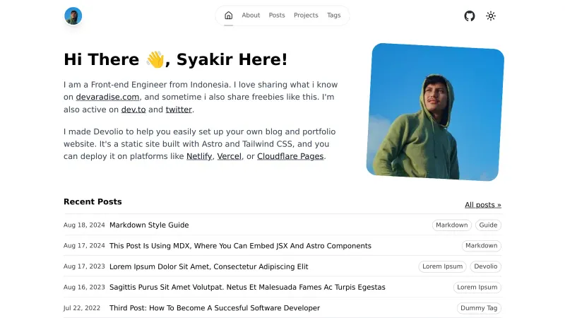 Devolio - Minimalist Starter for Developer Blog & Portfolio Website -