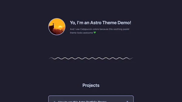 A minimalistic Astro theme inspired by Catppuccin’s soothing pastel palette — featuring a clean hero section, integrated link cards, and a Spotify “Now Playing” widget for a cozy, personalized touch.