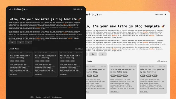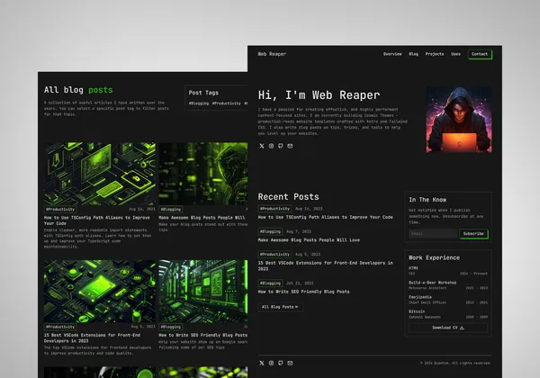 Be unique and show off your skills with this tech-themed portfolio template and blog. Built with Astro v5 and Tailwind CSS v4.