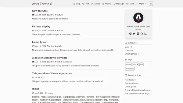 Crisp, minimalistic personal blog theme built with Astro.js and TailwindCSS.