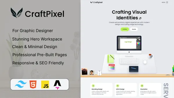 Craftpixel is a premium astro portfolio template meticulously crafted for graphic designers seeking to showcase their creativity with style and functionality