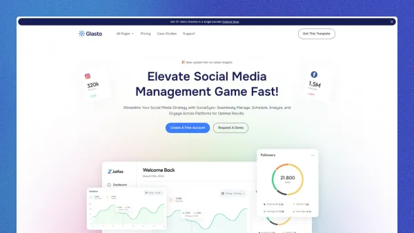 Glasto Astro is a minimalist SaaS template built with Astro and Tailwind CSS. Its modern design and fast load times ensure a seamless user experience.