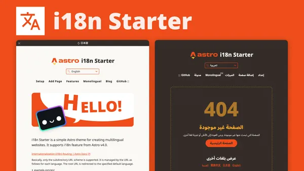 i18n Starter is a simple Astro theme for creating multilingual websites.