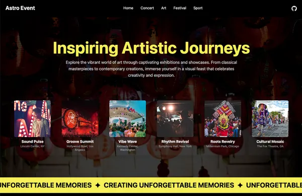 AstroEvent, is a minimal open-source Event Website Template built using Astro 3.0 (View Transitions) and TailwindCSS.