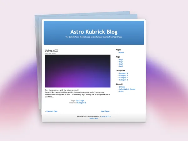 Kubrick Astro is a theme designed for all the nostalgics who once used WordPress and had the opportunity to experience this theme that undoubtedly changed the life of this CMS.