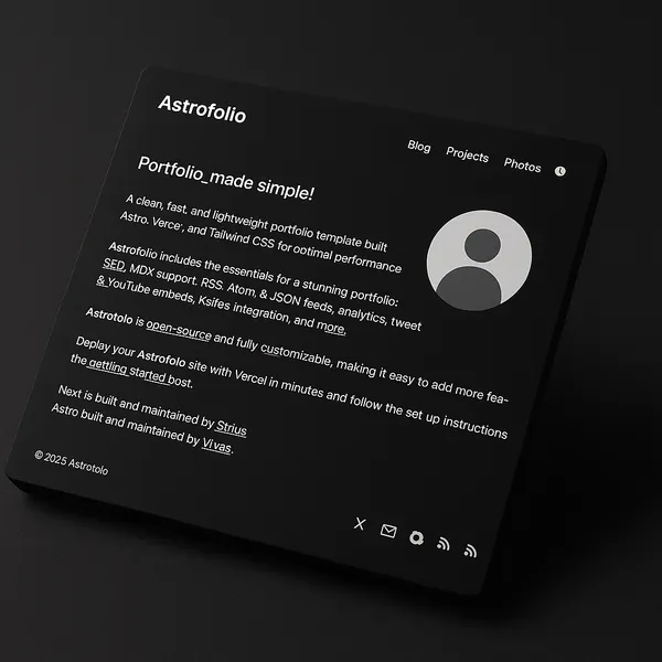 A clean, fast, and lightweight portfolio template built with Astro, Vercel, and Tailwind CSS for optimal performance.