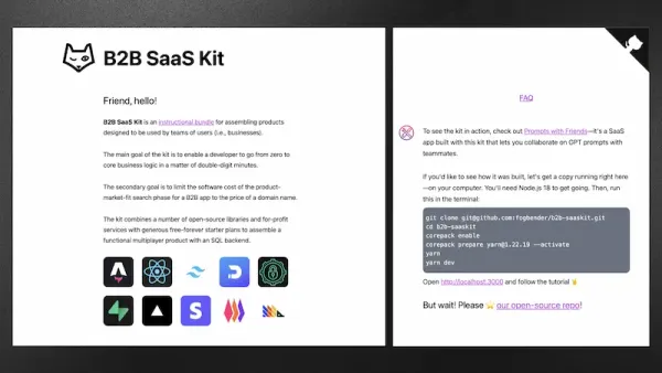 B2B SaaS Kit helps teams build applications, not just landing pages, using technologies like React Router, tRPC, Drizzle ORM, auth and payments.