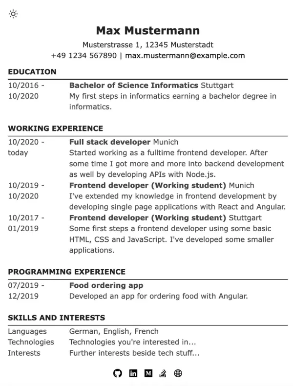 Minimal, easy customizable and responsive CV built with tailwind and dark support.