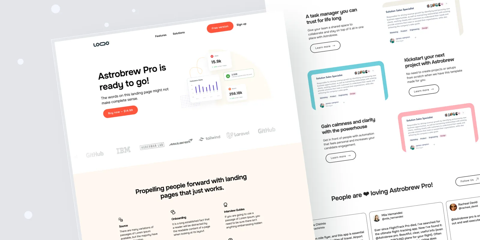 The Pro version now includes an engaging features showcase and multiple reviews enhanced with GSAP animations. Enjoy a fully responsive design that adapts seamlessly to any device, ensuring an optimal user experience.