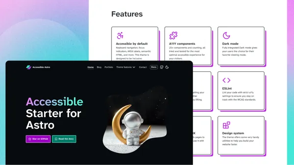 An Accessible, WCAG compliant Starter Theme for Astro 5+ including several accessibility features such as, better focus-outline, landmarks, semantics, interactive components and skip-link navigation. Ships with Tailwind 4, Prettier and ESLint support.